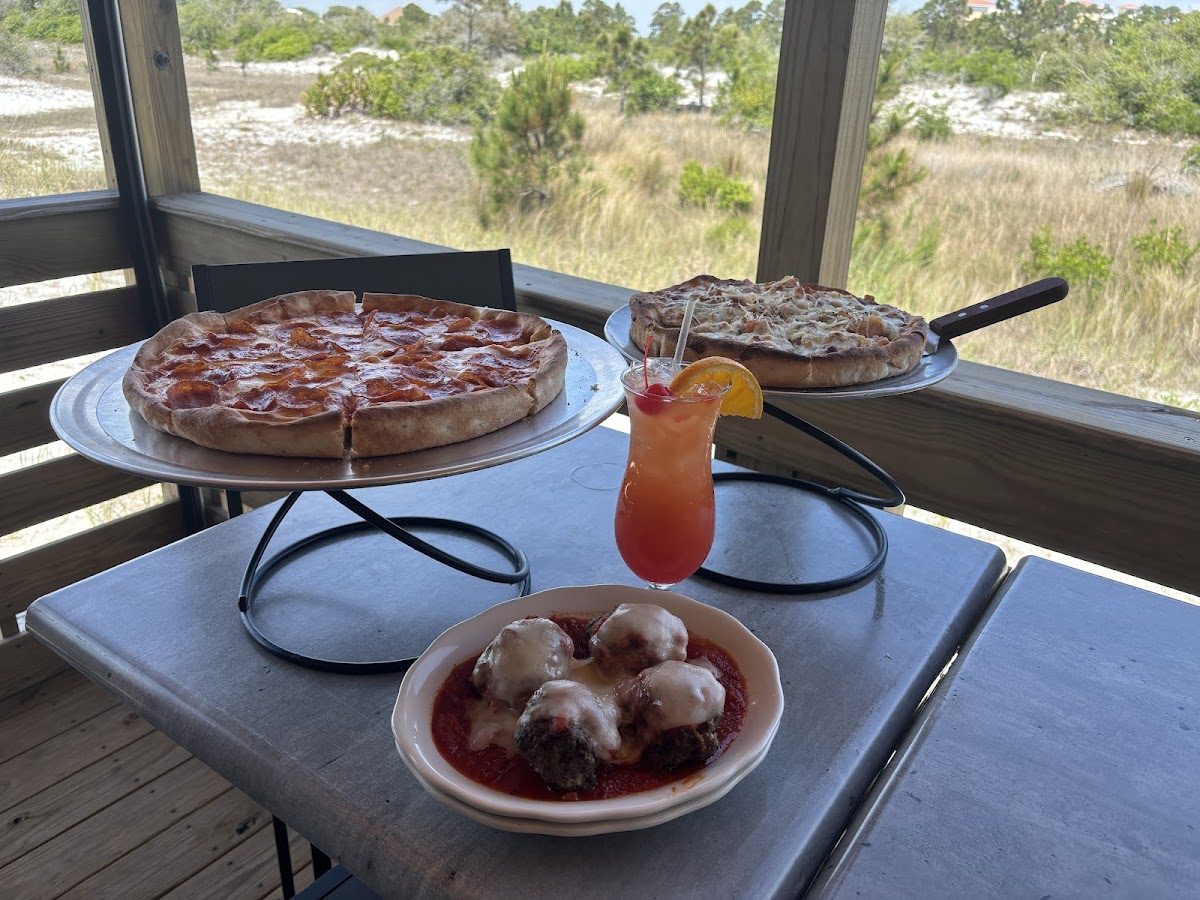 We got this pizza for carry out while staying at a condo down the street. The pizza was hot and delicious, the crust seemed like it was baked in a brick oven and the garlic rolls and meatballs were top notch. We ordered deserts as well and the staff were so funny and sweet to include a note with our cheesecake. Definitely a great stop for pizza in the beach.