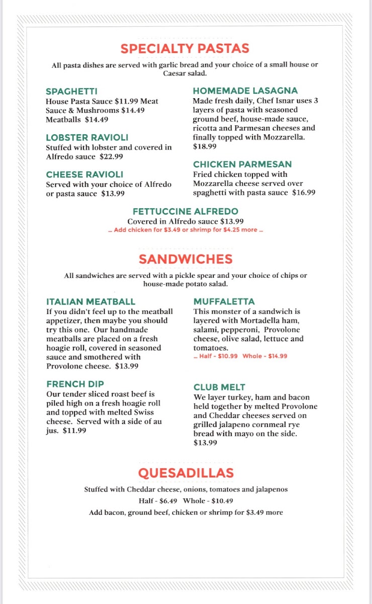 The menu at Lillian’s Pan Pizza offers a blend of hearty, comforting dishes suited to a casual dining experience. It’s the kind of place where you can enjoy a relaxed meal with friends or family, accompanied by live music that adds a welcoming, lively touch to the atmosphere.
